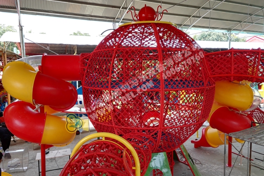 大型(xíng)的(de)造型(xíng)攀爬網龍,采用全手工編織網繩打造(zào),以章(zhāng)魚形象為主體,結合攀爬、翻越(yuè)、滑梯等功能,不僅造....