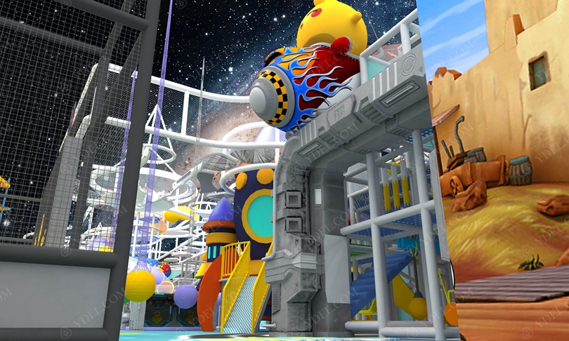 對兒童淘(táo)氣堡的(de)設計風格來說(shuō),主題和燈光(guāng)設(shè)計搭配(pèi)很能體現出一個淘氣堡的整體風貌。因為兒童淘氣堡的主....