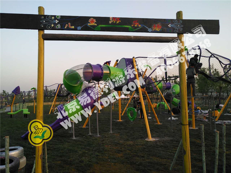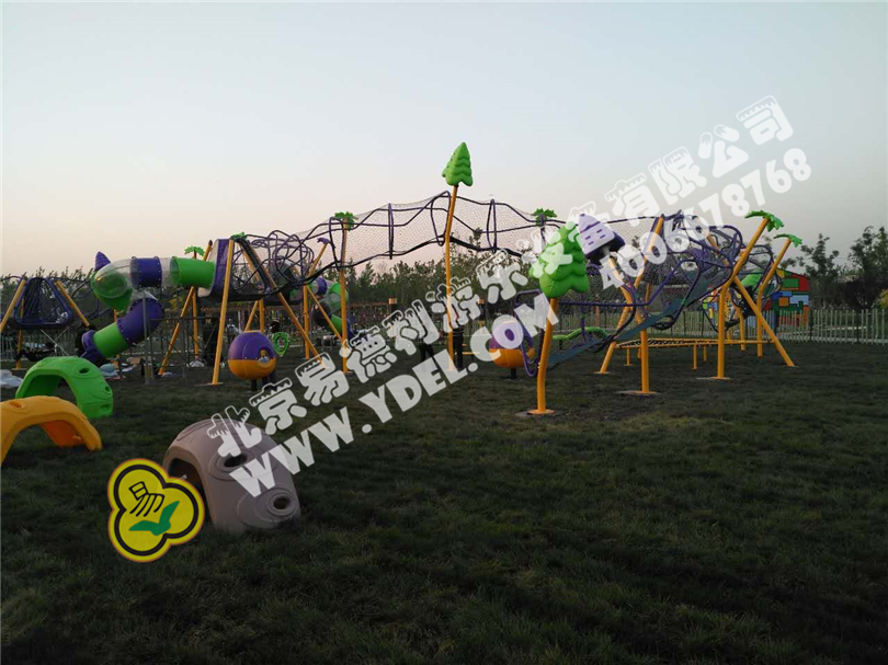 大型太空漫步戶外拓 展組合,網繩通道迂回曲 折, 空中(zhōng)環繞,孩子們在懸空中爬行,高低起 伏。一棵棵東倒(dǎo)西歪“小樹”穿插其中,讓孩子們感受到仿佛在異形的森林中穿梭漫走,異常新(xīn)奇和(hé)歡樂!