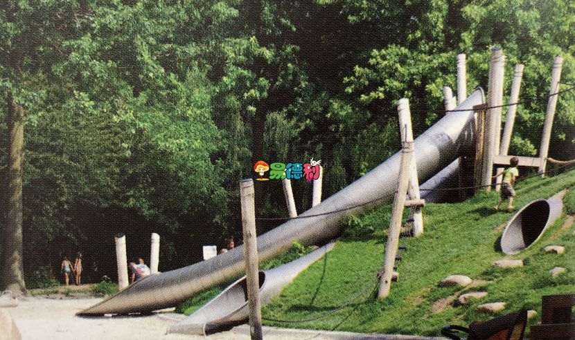 一個人工的小(xiǎo)山丘融入了兩種完全不同的遊樂(lè)設施: 其中一(yī)邊是一個草地(dì)斜坡,配有滑梯、隧道和其他冒險遊樂設施; 而在另外一邊,卻(què)是一