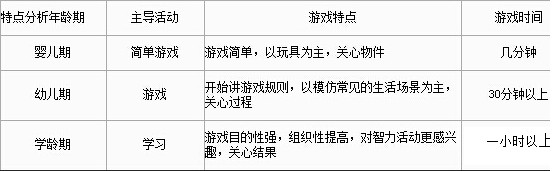 不同年齡期兒童遊戲的特點