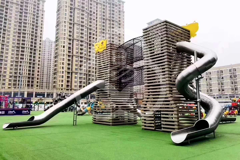 戶外多功能木製滑梯(tī)
